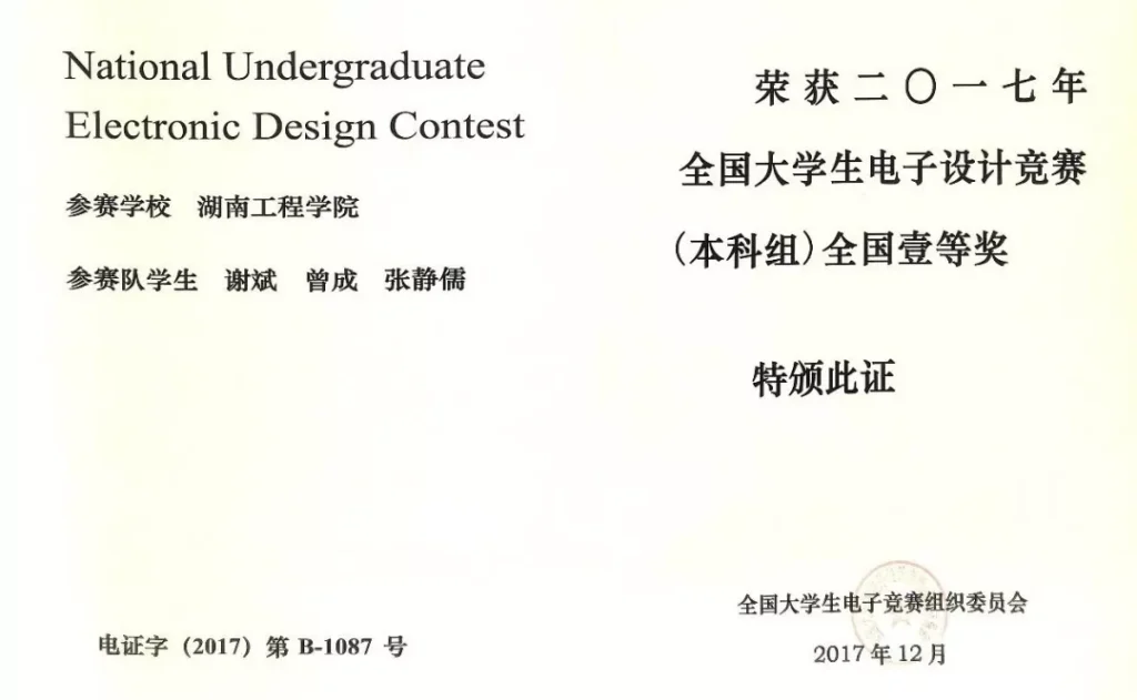 先自我介绍一下吧,本人就读湖南一所普通二本,国赛的时候选担任我们小队队长,负责程序部分,拿了2017年全国大学生电子设计竞赛控制组的国家一等奖。在搞国赛前,整个大学我有三个坎没能过去,一想起就觉得特别遗憾。