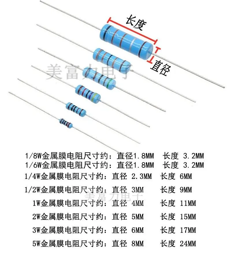 从下图可以看出,插件电阻是有长度和直径之分的。