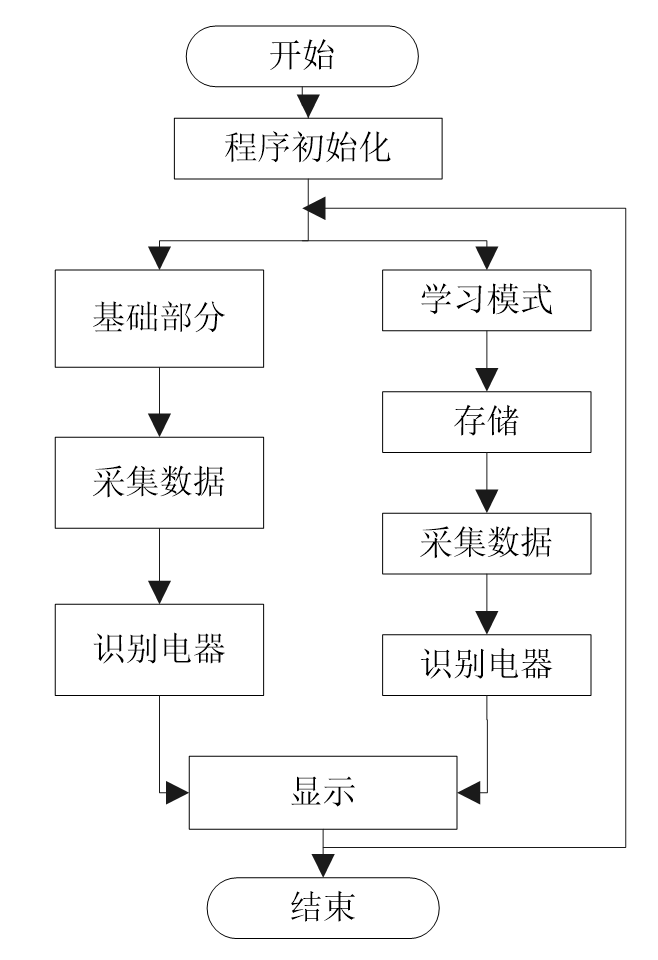 数据处理通过快速傅立叶变换程序,将采集到的电流波形进行变换与运算,可以得到电流的谐波与相位,然后通过电流、电压、阻抗、谐波参量、相位等参数对电器进行识别。
